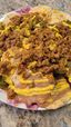 Nacho Bowl with beef, beans, cilantro, jalapeños and sour cream